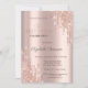 Um convite moderno, chico e glamouroso com brilho pingando em fundo rosa.