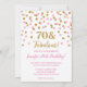 Convites de festas de aniversários de 70 personalizados em um padrão de configuração de brilho rosa e dourado. Adicione o seu nome e detalhes da sua festa para um convite de festas 70 exclusivo e na moda e fabuloso.
