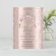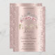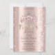 A modern, chic, and glamorous with glitter confetti, and floral crown on a rose gold background.