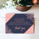 Elegante confete de brilho de coral e tipografia de blocos coloridos em marinho azul e falso obrigado de casamento geométrico de folhas de coral que você oferece, desejando bons cartões, perfeito para casamento elegante e luxuoso,