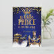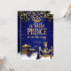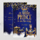 Convites Glitter de Carruagem Dourada azul Príncipe Chá de