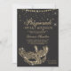Um doce moderno, chico e glamouroso dezesseis, com uma máscara de mascarada dourada desenhada à mão, com faíscas de diamante brilhante rosa sobre uma cinza escura editável.