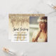 Este design de convite moderno apresenta uma falsa fonte de brilho dourado e caligrafia elegante. Adicione sua foto favorita.