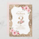 Frente cintilante de ouro brilhante e floral cor-de-rosa pincelado com três grandes no centro, elegante e na moda, aniversário de 3 anos de excelente convites para meninas.