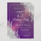 Convites Glitter de Prata Chic Drips Purple 75. º Aniversár
