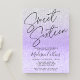 Um moderno convite roxo e prateado doce 16, com fundo falso brilhante e luzes brilhantes.
