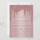 O Elegante Rosa Dourado Sparkle Glitter Drips Quinceañera ou Birthday Invitation com falhas de brilho e fundo rosado metálico brilhante. Há um filtro opcional para ajudar a desativar o texto branco na parte inferior; ele pode ser desligado clicando em "personalizar mais" e excluindo essa camada. Projetado por Cedar e String. Para personalizar ainda mais, clique no link "personalizar mais" e use a ferramenta design para modificar o design. Se precisar de assistência ou itens correspondentes, entre em contato conosco em cedarandstring@gmail.com