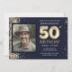 Convites Glitter Dourado azul-Festa de aniversário 50