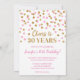 Convites de festas de aniversário de 30 anos personalizados em um padrão de configuração de brilho rosa e dourado. Adicione seu nome e detalhes da festa para um convite de festas exclusivo e na moda a 30 anos.