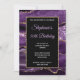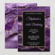 Crie o seu próprio convite para comemoração de aniversário de na moda de rico marco 5x7 para ela. Design de fundo gráfico de arte digital de forma decorativa, brilho dourado e agata púrpura. Há brilho de ouro e sobreposição de retângulo preto para suas informações de convite. Personalize os estilos de fonte branca e lavanda, cor e tamanho. O luxo brilho e agitação modernos são criados com a aquarela de arte digital e elementos de estilo brilhante que impressão gostam de uma foto. Fabuloso convite para o seu melhor amigo.