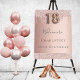 Um convite moderno, na moda e glamouroso para a 18ª festa de aniversário de uma menina. Um fundo metálico rosa dourado falso com um brilho elegante rosa dourado, pintura gota-a-gota. O nome é escrito com um moderno e escuro, rosa dourado, escrito com letra de estilo manuscrito. Personalize e adicione os detalhes da sua festa. O número 18 é escrito com uma fonte de estilo balão, script.