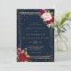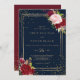 Este glitter de ouro geométrico e o convite de casamento tropical vermelho é perfeito para um casamento rústico. O design de marsala, artístico bordo, apresenta rosas de aquarelas, verdes, cor-de-rosa, burgundy e blush, combinados com verde, bem arrumados em torno de quadros de ouro geométricos, num buquê de flores gracioso e radiante.