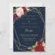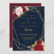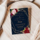 Este glitter geométrico de ouro e o convite para casamento tropical vermelho é perfeito para um casamento russo espanhol. O design de marsala, artístico bordo, apresenta rosas de aquarelas, verdes, cor-de-rosa, burgundy e blush, combinados com verde, bem arrumados em torno de quadros de ouro geométricos, num buquê de flores gracioso e radiante.