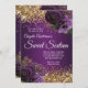 Convites Glitter Dourado Glama Floral Roxo Doce Dezesseis
