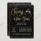 Convites Glitter Dourado negro da festa do Ano Novo Chic