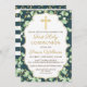 Convites Glitter Dourado verde Primeira Comunhão Sagrada
