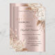 Um convite moderno, chique e glamoroso com glitter drips e flores boho em um fundo rosa dourado.