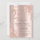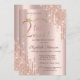 A modern, chic and glamorous invitation with glitter drips on a rose gold background.