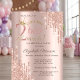 Convites Glitter Drips Crow Rose Gold 2nd Birthday