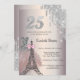 A modern, chic and glamorous Sweet 25 with glitter drips, chic dress, and Eiffel Tower with bow on a rose gold background.