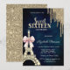 Convites Glitter Drips,Eiffel Tower Bow Navy Blue Sweet 16