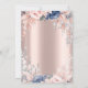 Um brilho moderno, chico e glamouroso pinga, flores azuis e uma torre Eiffel sobre fundo rosa dourado.