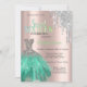 Convites Glitter Drips,Green Dress Rosa Dourado Sweet 16