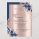 Convites Glitter Drips Rosa Dourados Flores Azuis Doce 16
