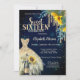 Convites Glitter Drips,Vestido,Girassóis Azul Sweet 16