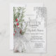 Vestidos elegantes de prata, gotas de relva prateada e ramos de pinheiros com bagas na neve. Insira suas próprias informações ou personalize-as para remover qualquer elemento desejado. Excelente para um evento elegante e não se esqueça de abençoar seus convidados.
