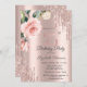 Um brilho rosa dourado moderno, quic e glamouroso pinga, e rosas de aquarela em um fundo rosa dourado.