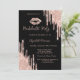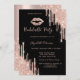 Um brilho moderno, chico e glamouroso pinga, e lábios sobre um fundo preto. Clique no botão "Personalizar" - em seguida, "Clique para personalizar mais" para começar com seu layout! Divirta-se na sua festa noiva com este convite elegante. Convide seus convidados para levantar um copo e se unir à diversão com estes convites festivos.