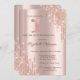 Um convite moderno, chico e glamouroso com brilho pingando em fundo rosa.