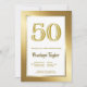 Um convite de aniversário de ouro moderno, com o formato 50º, com uma falsa brilha de ouro 50.