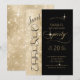 Celebre seu evento Sweet XVI em estilo com este modelo de convite com uma fonte decorativa única em um estilo retrorreflector de tendência, uma parte de fundo ofuscante brilhando tons de ouro, parte um preto sólido. O texto impressionante dos "Dezesseis", com efeito de brilho do ouro espumante, é facultativo e pode ser suprimido para utilizar o modelo para outras ocasiões. Use o modelo fornecido para personalizar os detalhes do evento. Procure ID675 para ver outros produtos e opções de cores para este design.