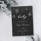 Modelo de convite de festas moderno, elegante e isento de gênero quic, apresentando um fundo preto texturizado, brilho, a palavra BABY e flocos de neve desenhados à mão cobertos por rochas (não rotinas reais, este é um efeito digital), tipografia moderna. Uma design chic, eterno para uma futura mamãe que comemora seu chá de fraldas nos meses de inverno, novembro, dezembro ou janeiro ou mesmo além, enquanto houver neve!