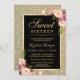 Convites Glitter Floral Clássico Dourado Doce 16 Festa de a