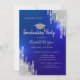 boné de formatura brilhante Dourado e brilho prateado pingam em fundo azul.