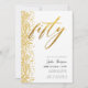 Convites Glitter Geométrico Dourado Branco Elegante 50º Ani
