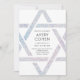 O Convite para Bat Mitzvah, Holográfico Moderno, apresenta um esboço exclusivo e moderno da Estrela de David em torno de seus detalhes de eventos.