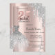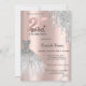 Um 25 moderno, chico e glamouroso, doce, com gotas de brilho, vestidos e torre Eiffel sobre fundo rosa de ouro.