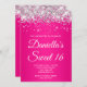 Convites Glitter prateado, cor-de-rosa quente Sweet 16