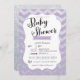 Convites Glitter prateado e Chá de fraldas cevon púrpura