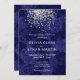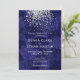 Um convite de casamento elegante e moderno com um esplêndido confete de brilho prateado num rico fundo azul real de rosas. Um design verdadeiramente clássico para o seu dia especial. Você pode personalizar a fonte da maneira que quiser ou adicionar sua própria mensagem especial. Este convite é parte de uma bela suíte de casamento.