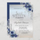 Convites Glitter Prateado Flores Azuis Prata Sweet 16
