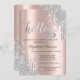 Convites Glitter prateado gotas de Rosa Dourado 25 Aniversá