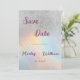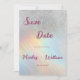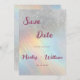 Simples tipografia cor-de-rosa com brilho prateado e cor-de-água... holográfico Casamento Salve o convite da data é perfeito para qualquer garota de vidro elegante e sofisticada. Este design é ideal para um evento de tendências e na moda. Personalize este design com sua mensagem e informações personalizadas. Todas as designs são impressas.