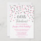 Personalizar 60 Convites de festas de aniversários em um padrão de configuração de brilho rosa e prateado. Adicione o seu nome e detalhes da sua festa para um convite de festas 60 exclusivo e fabuloso.
