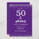 Convites Glitter prateado roxo 50ª Festa de aniversário