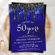 Convide amigos e família para a sua festa de aniversário com estes elegantes convites de aniversário azuis e negros brilhando 50º e suprimentos de festas. Este elegante convite de aniversário chic apresenta 'Saúde a 50 Anos', personalize anos por 30, 40, 60, 70, 80, 90 ou qualquer idade. Este design azul e preto é perfeito para eventos temáticos da polícia, festa da polícia e polícias, assim como celebrações corporativas e comerciais. Veja nossa coleção para combinar favores, suprimentos e presentes de festa de aniversário. COPYRIGHT © 2020 Judy Burrows, Black Dog Art - Todos Os Direitos Reservados. Elegante Blue Black Glitter Drips 50 Convite de aniversário